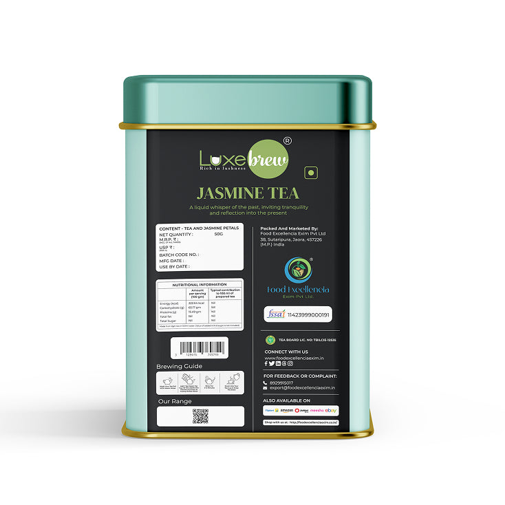 Luxebrew Jasmine Tea infuses tea leaves with delicate jasmine blossoms (or natural jasmine aroma). The resulting liquor is pale, perfumed, and gracefully floral. On sipping, you’ll find subtle sweetness, mellow tea body, and lingering blossom scent. This makes it a sophisticated, aromatic choice for mindful sipping or gifting.