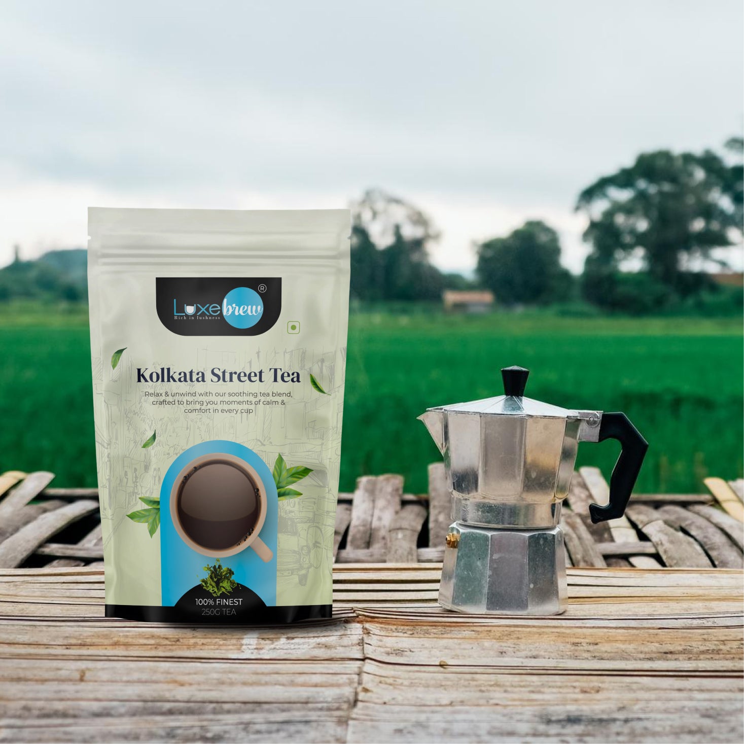 Luxebrew Kolkata Street Tea channels the robust, spiced chai you find on Kolkata’s streets. Built on a strong black tea base, it may include warming spices like ginger, cardamom, and masala. The dark amber infusion is rich, spicy, and full-bodied, best enjoyed with milk and sugar. This is tea that evokes nostalgia, energy, and authentic Indian chai spirit.
